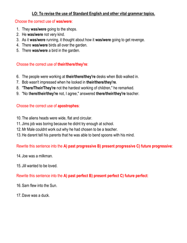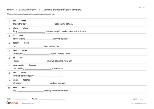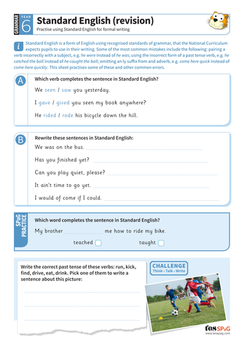 Correcting non standard slang with standard english. We have over 300 English worksheets for year six children. OBJECTIVES QUESTION Add to my workbooks 26 Download file pdf Embed in my website or blog Add to Google Classroom.