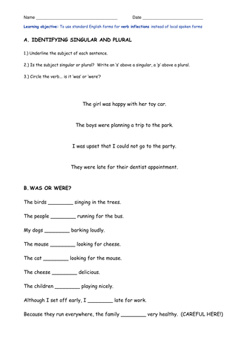 Was Vs Were Verb Inflections Powerpoint And Worksheet Teaching Resources