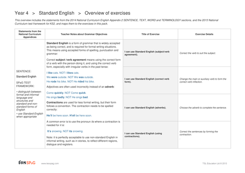 Spag Using Standard English And Revision Of Vital Grammar Topics Lastingliteracy Teaching Resources