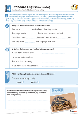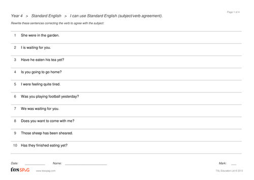 Standard English Question Sheets Year 4 Spag Teaching Resources